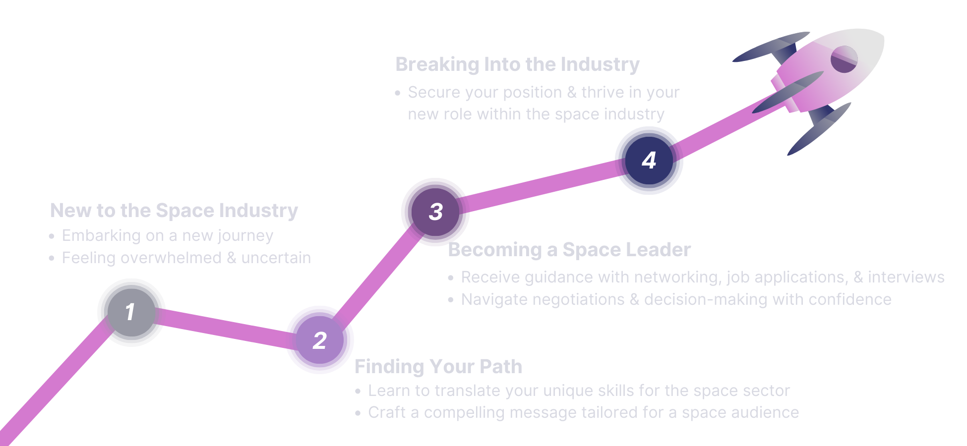 Work directly with me and immerse yourself in a community of driven professionals. Together, we'll refine your vision, set clear goals, and equip you with the tools and insights vital for a thriving space career.
